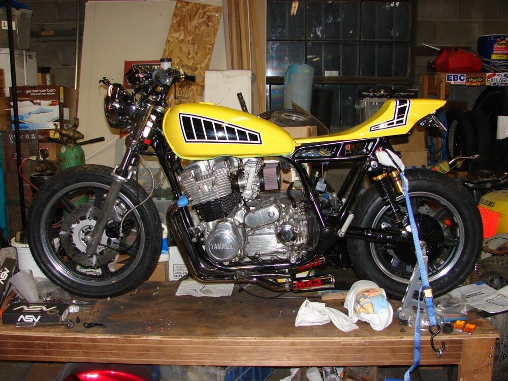 Here are a couple of photos. The bike (XS650) is just primed, but sounds great and runs perfect. Jerome Sorich
